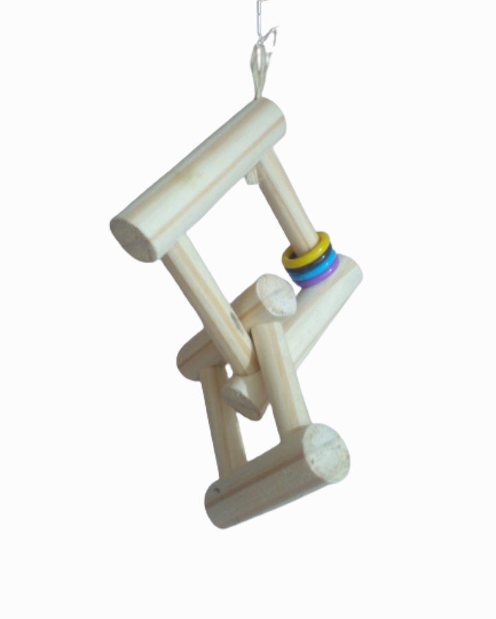 Brinquedo de Madeira e argolas para Calopsita e Outros Pássaros.